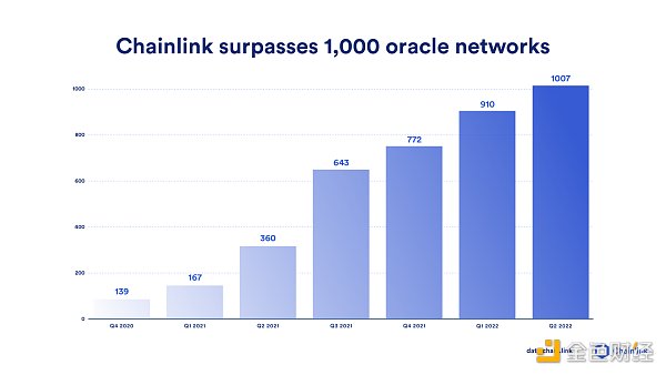 在这种成熟的经济模式的支持下,十几条区块链上已经成功部署了1000多个Chainlink预言机网络,以满足用户需求。据近期美国银行的研究报告称,Chainlink对DeFi的发展起到了至关重要的推动作用,帮助DeFi实现了2030亿美元的总锁仓量,并将加速区块链未来在金融、保险以及供应链等各个领域的应用。