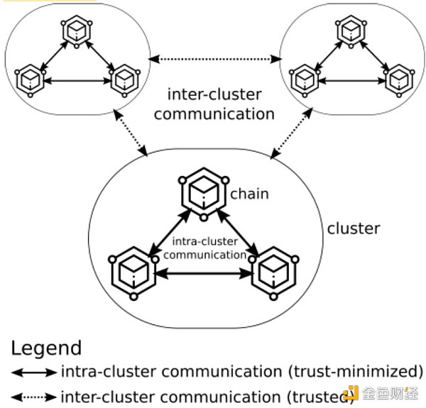在这些集群内部存在着「内部通信」,这是集群内 rollup 的通信方式,这些集群内部的通信通常是通过信任最小化的桥解决方案,依靠诚实少数的假设。