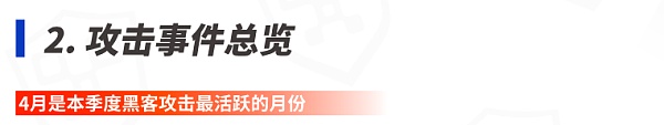 从时间上来看,4月是黑客攻击最活跃的月份,5月攻击事件数量和损失金额都出现了大幅下降,6月黑客活跃度有回升趋势。