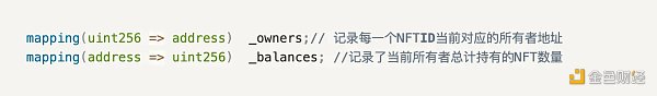 其实NFT只是通过2个映射(_owners,_balances),即一种字典形式的key-value对应关系的存储结构去记录数据