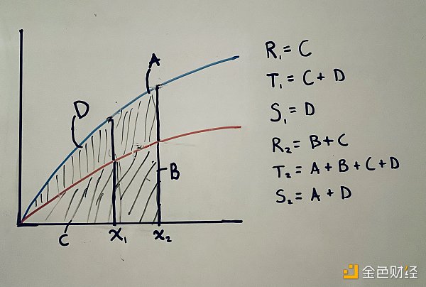 让我们暂时忽略销毁曲线;或者更确切地说,将其设置为等于铸造曲线。考虑这里相对于联合曲线创建的储备属性。虽然我怀疑你们中间的数学问题会难以跟上,但我们现在将跳过微积分,对更广泛的观众表示怜悯。所以忘记数学。看看这些五颜六色的图表。