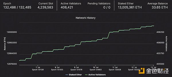 信标链目前有 404,125 名验证者,每个验证者需要质押 32 ETH(约 33,632 美元),这是参与共识和获得质押奖励和交易费用所需的门槛。尽管没有给出具体数字,但根据以太坊基金会研究人员的说法,验证者的理论最大数量约为 400 万。