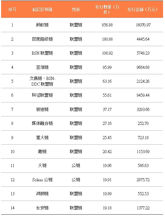 (二)蚂蚁链以发行856.88万件数字藏品位居榜首