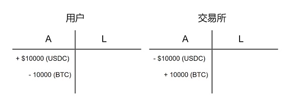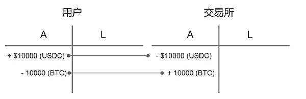 例如,在图 3 的例子中,如果我们把交易对手方(例如交易所)的增量平衡表与该用户并列,则可以得到以下的联合增量平衡表:
