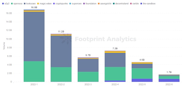 进入第二季度后,尤其是在 6 月 NFT 交易的市场不再是 OpenSea 一家独大了。