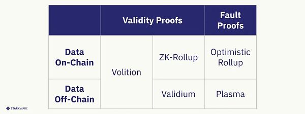 StarkNet使用Validium机制来实现数据可用性。它与ZK-rollup几乎相同,只是它保持数据在链下,而ZK-rollup和Optimistic Rollup (OR)保持数据在链上。Validium只在L1上发布有效性证明,同时保持数据在链下。这使得Validium能够实现相当高的吞吐量,并降低每个交易的成本。