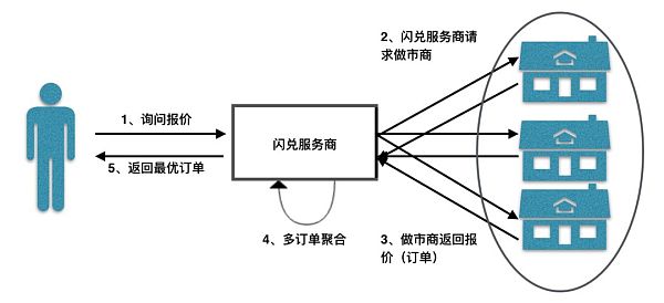 当用户询问价格时,闪兑服务商对所有市商进行询价,然后所有市商都会返回一个价格,闪兑服务商会对所有返回的价格进行聚合,最后会筛选最优价格的订单返回给用户。