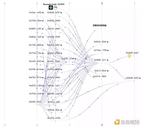 通过部署 Geometric birds 的智能合约的钱包地址(以下称地址 D)追根溯源,可以直观地看到这些地址之间有着千丝万缕的联系。