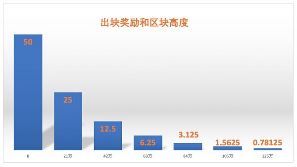 比特币系统规定:从创世区块开始,每21万个区块,出块奖励减少一半,直到比特币最小单位1聪,无法减半,不再有出块奖励。从0号区块到第209999号区块,正好21万个区块,它们的出块奖励是50BTC。换句话说:区块高度为21万整数倍的区块,比如区块高度为42万、63万、84万的区块,比特币系统就会执行出块减半操作。