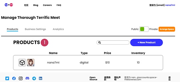 Space在路线图中表示,他们当前阶段的目标是支持每个人在space里构建NFT商店。我们看到,在商品上架功能中,首先被支持的币种是BUSD和以太坊主网的USDC。但与web3钱包的衔接目前尚未开发好,商品目前还只是只能参观的展品。