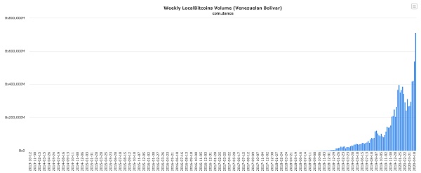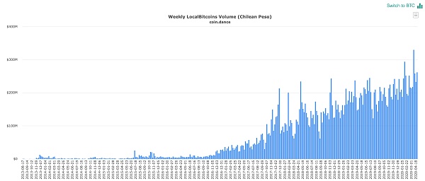 据著名的点对点交易所LocalBitcoins的数据,南美国家如阿根廷、委内瑞拉和智利目前按当地法币计价的比特币交易额最近的确显著性增加。见下图。