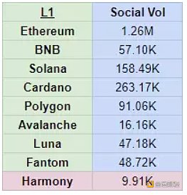 与其他 L1 相比,代币 $ONE 获得的关注程度:??