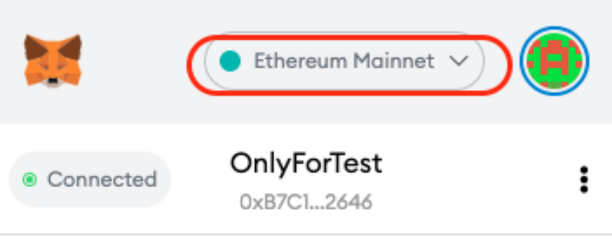 1)打开 Metamask 钱包,选中顶部下拉框