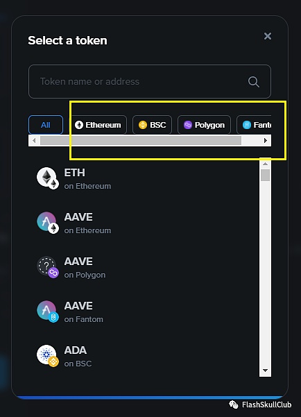 这里面的代币,可以先选择相应的主网,目前支撑的有以太、BSC、马蹄、以及Fantom四种。