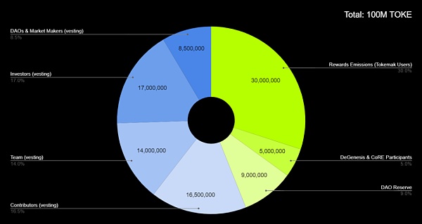 5,000,000 TOKE ( 5%?):在「零周期」(Cycle Zero) 的 DeGenesis 事件和 CoRE (反应堆抵押事件)中,TOKE 将进行第一次发行