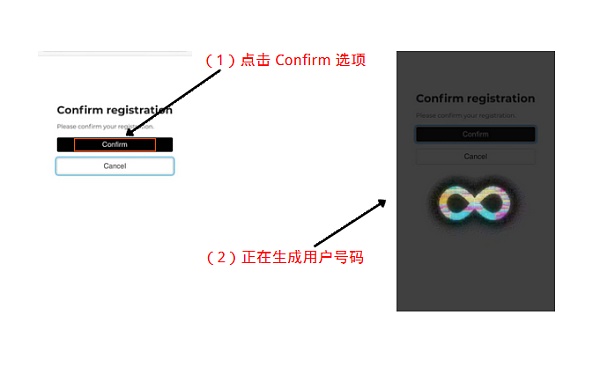 再次点击上图中左侧页面中的 Cinfirm 选项,之后出现上图右侧页面则说明正在生成用户号码。