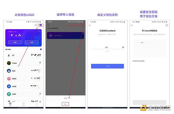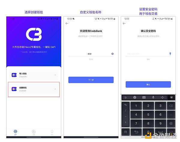 1、下载CodeBank钱包安装打开后,无HECO(火币生态链)资产钱包用户:点击[创建钱包]—按提示自定义钱包名称—设置安全密码(用户交易等操作)如图: