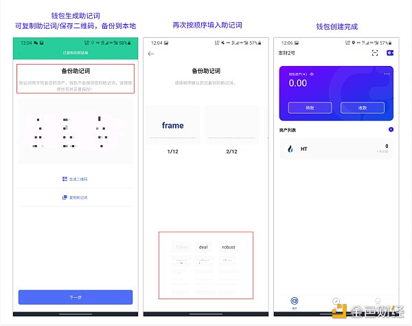 2、资金助记词备份:严格按照提示操作,按顺序保存助记词,强烈建议线下抄写保存,点击[下一步]再次按顺序输入刚保存助记词,即完成