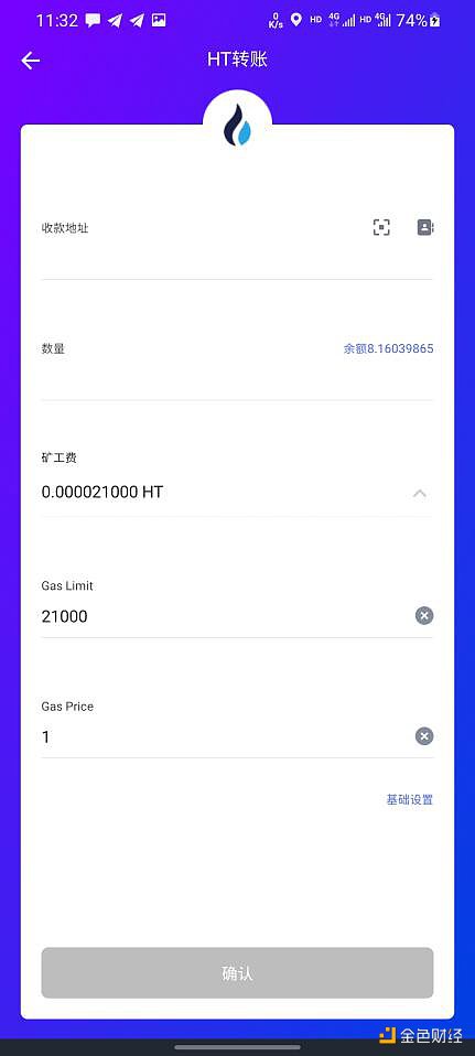 2、转账方式分为[地址簿转账][扫码转账]两种方式,我们根据自己习惯的方式选择即可。转账界面请认真填入并核对收款地址和转出数量是否正确;矿工费支持自定义设置,调整交易处理速度;[高级功能]可以自定义输入[gas费]并发送上链。