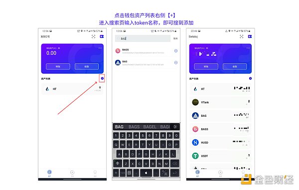 4、添加想要的代币,点击资产列表右侧[+]进入搜索页,即可添加到资产列表