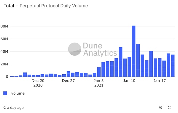 perp.fi 的日成交量比dy/dx 高出了近8倍,比mcdex高出了40倍。