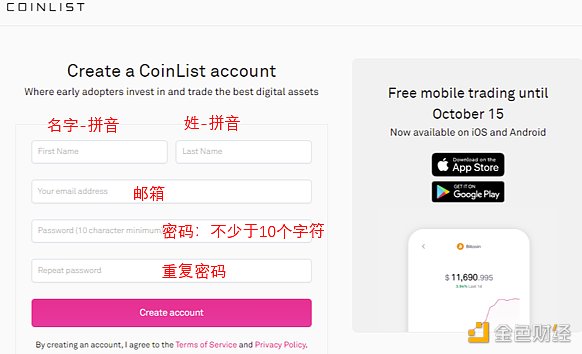 进入Coinlist主页,点击右上角的“Get started”,进入注册界面。你也可以直接点我注册。