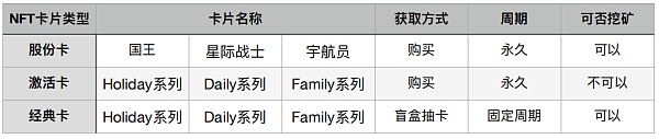 BunnyPark全球首创了三种类型NFT卡?,分别是“股份卡”、“激活卡”、“经典卡”。
