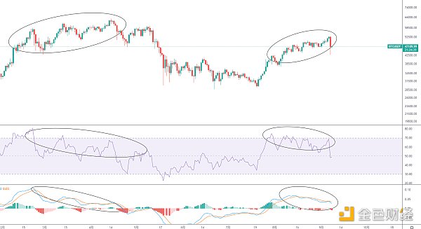 前期已提示,日线级别这种持续的背离,不化解的话后面随时引发大调整,前面已有多次这样的例子,最近的就是触顶65000美金后面腰斩至3万美金的瀑布,加上0.618一带日线站上一天便跌回,实为假突破,又是一波新高背离,加上前面两波已经三重顶背离,所以这波大调整正常,想要趋势行情继续的话,只有调整才能化解风险。