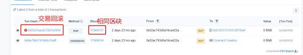 3、我们在相同区块内找寻到了真实攻击者的地址与交易,该交易被回滚了。