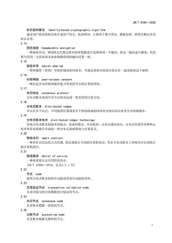 近日,《金融分布式账本技术安全规范》(JR/T 0184—2020)金融行业标准由中国人民银行正式发布。标准规定了金融分布式账本技术的安全体系,包括基础硬件、基础软件、密码算法、节点通信、账本数据、共识协议、智能合约、身份管理、隐私保护、监管支撑、运维要求和治理机制等方面。标准适用于在金融领域从事分布式账本系统建设或服务运营的机构。