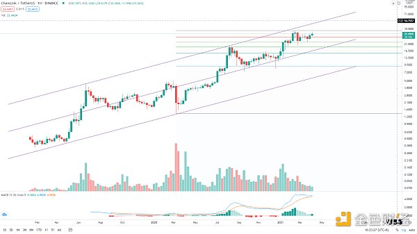 目前仍是上升三角整理状态,昨日下探至趋势线附近开启反弹,后续将迎来变盘,上方短期压力60000美金,下方支撑55000美金,近期耐心等待方向选择,4月14日Coinbase将在纳斯达克上市,后续利好刺激一旦向上突破,新的上涨空间将打开,大方向仍是多头趋势,中长线逢大幅回落,分批低吸,耐心持有。