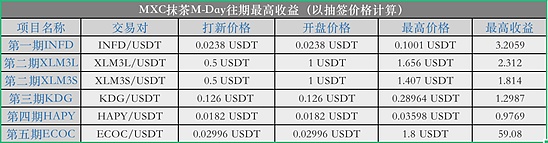 上周一,MXC抹茶M-Day第五期项目ECOC开盘,用户每签实现最高5908.00%的收益率,没想到远超过了前四期M-Day项目最高收益率的总和。
