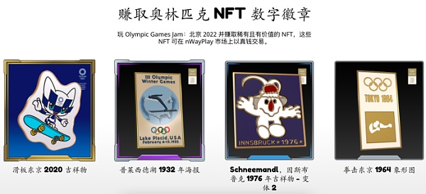 根据公告,这些NFT可以在nWayPlay交易市场中购买,也可以在《Olympic Games Jam: Beijing 2022》游戏中获得。