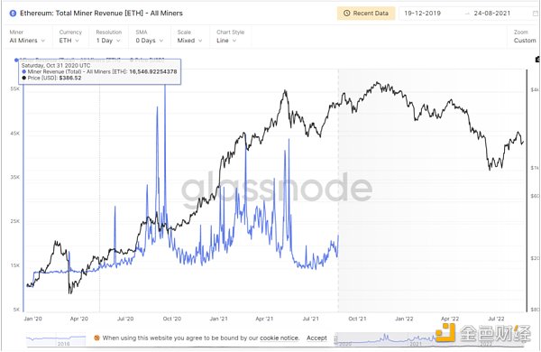 一直以来大量的挖矿收益被矿工获取,以太坊 2022 年 7 月矿工总收入达到了 5.96 亿美元,按照这一数据估算,大约年收入约为 70 亿美元(2021 年达 180 亿美元)。按照 2021 年的数据,ETH 挖矿收益中,电费成本大约占到 33%,矿机成本占到 10%,对应 2021 年和 2022 年 77 亿美元和 35 亿美元的成本。