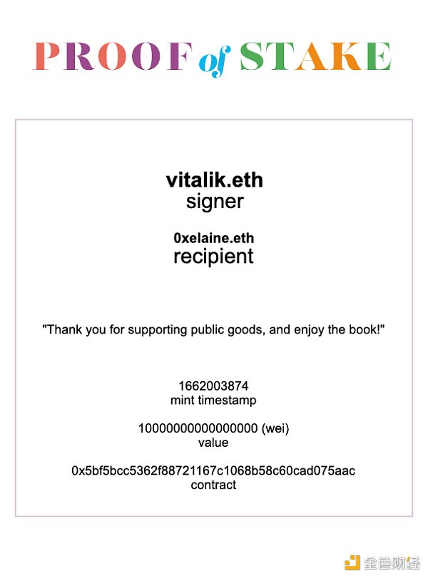 期待以太坊2.0 Merge之后走向POS的新发展,同时也欢迎大家关注和支持V神新书《Proof of Stake》数字版和实物版将出版,记录了他10年读者可在 Gitcoin 为其捐赠并获得数字副本和纪念 NFT,全部收益将用于公益事业,并且可以生成一个不可转让的SBT(灵魂绑定)。
