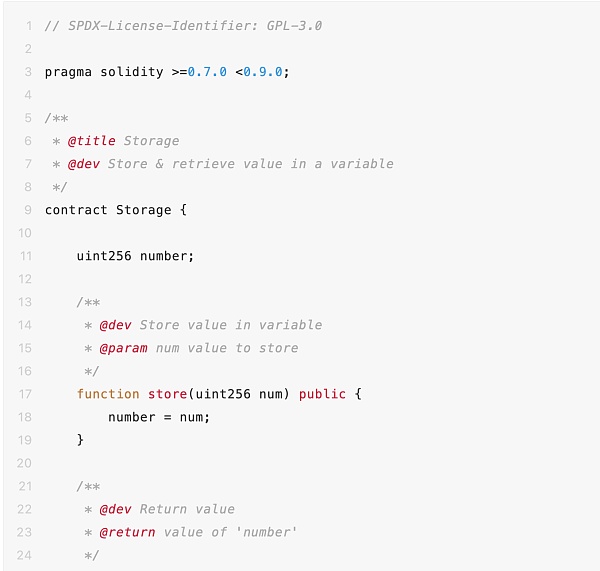 智能合约被部署后编译生成的字节码代表了整个合约的内容,其中存在多个可调用的函数。那么 EVM 是如何知道不同函数所对应的字节码是哪个呢?下面我们将通过一个 Solidity 智能合约及其字节码和操作码来向大家演示 EVM 在执行代码时是如何在字节码中选择对应的函数的。