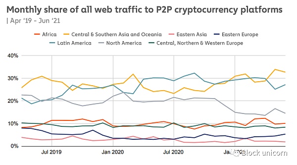 Chainalysis报告里两个有趣的数据点表明,用户已经转向使用P2P加密支付作为将资金汇回原籍国的常见方式。首先,拉丁美洲的P2P加密活动高于平均水平,推动约28%的网络流量流向P2P加密货币平台。其次,在拉丁美洲所获利的所有价值中,11%来自国内,89%来自国外。加密交易费为跨境转移资金提供了更经济实惠的价格,区块链技术提供了更快的交易速度,使拉丁美州成为让数百万用户获得成本、速度和安全性的理想环境,也使其能够利用新技术成功嵌入拉美生活方式。