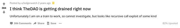 Alexey Akhunov?发现了 TheDAO 的异常并发布在 Reddit 上,这成为了一篇?有历史意义的帖子?
