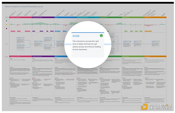 这个例子来自产品设计师Todd Moy发表的一个名为“理解一条路径”的案例研究。这是一个引人注目的例子,因为它涵盖了开发过程的所有方面,包括内容和产品接触点。Moy研究了一个被他称为“Dewey”的开发者角色的旅程,并试图记录他的动机、痛点和积极时刻。