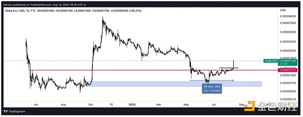 上周六我收到了 SHIB 突破阻力位置的行情异动提醒,DOGE/BTC 开始走平意味着我们即将迎来市场的新一轮选择,要么熊市反弹中山寨币的最后一波轮动,要么新一轮爆发式行情会很快到来。结合市场近况我认为后者发生的可能性会更高。