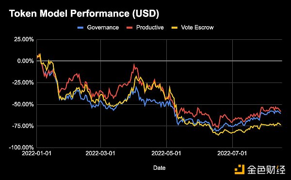 虽然直觉上许多人认为治理代币应该表现最差,因为他们被广泛认为是无价值的,但投票托管代币实际上是三种代币模型中平均表现最差的。需要注意的是,这一成绩不包括持有者从协议费、贿赂和任何其他正向现金流活动中获得的任何收益。