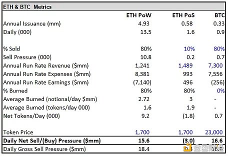 投资者低估了合并对整个市场宏观环境的影响。关于先前 BTC 减半导致的供应减少多少推动了随后的价格走势,而不仅仅是与市场情绪和货币政策的自然周期一致。另一个常见的说法是供应变化不会推动价格,重要的是需求变化。我们认为供应减少与需求增加没有什么不同。假设矿工每天卖出 1 万 ETH,如果只是简单地增加了每天 1 万 ETH 的买入,这虽刚好消除矿工抛售压力,但这是需求变化而不是供应变化。很明显,这两个选项会产生相同的影响,因此供应减少和需求增加的影响是一样的。