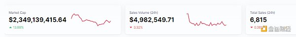 24小时NFT交易量、交易量前十项目 数据来源:Coinmarketcap