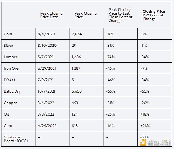 商品价格是先行指标,处于上游加工阶段。大多数大宗商品价格已见顶,除食品和能源外,都在同比下降,如下所示。毫无疑问,食品和能源价格很重要,但我们认为美联储不应该应对和加剧与俄罗斯入侵乌克兰导致的农业和能源商品供应冲击相关的全球痛苦。