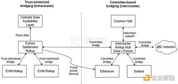 作为强制结算 rollup 方案中的一种,Cevmos 尝试通过为 rollup 提供专门的结算层来实现成本的降低与效率的提升(受限的 EVM)。具体来说,在这个堆栈中,Cevmos 将作为一个结算层,将以 Evmos 为基础,在其之上构建 EVM 的递归 rollup(rollup 中的 rollup)。