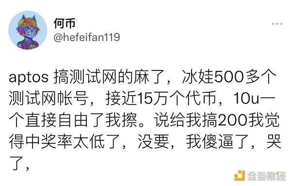 也有人捶胸顿足,叹道,想着测试网申请那么卷不会被选上,没想到是参与了就有奖。