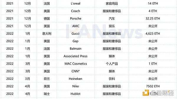 CoinGecko考察了自 2020 年以来独立或与合作伙伴推出可交易NFT 系列的欧美“传统”品牌。
