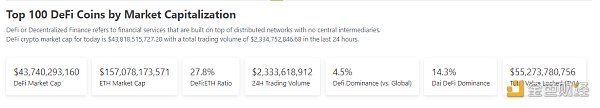 1900/1/1 0:00:00DeFi数据1、DeFi代币总市值:458.60亿美元 DeFi总市值及前十代币 数据来源:coingecko2、过去24小时去中心化交易所的交易量25.