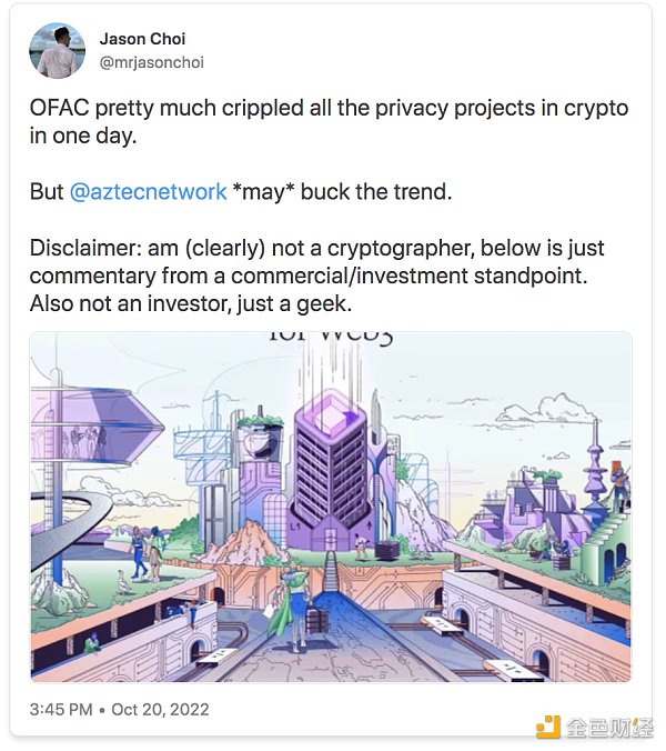 OFAC 最近对隐私项目造成了很大的破坏。很多 crypto 原住民对此非常关注。而 Aztec 带来了一线希望。