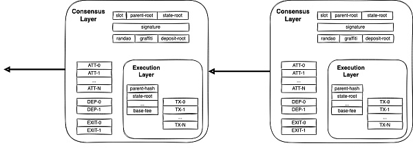 上图为合并后的信标区块,执行层被包裹在共识层里,而 EL 最核心的部分就是 ExecutionPayload (执行负载)。